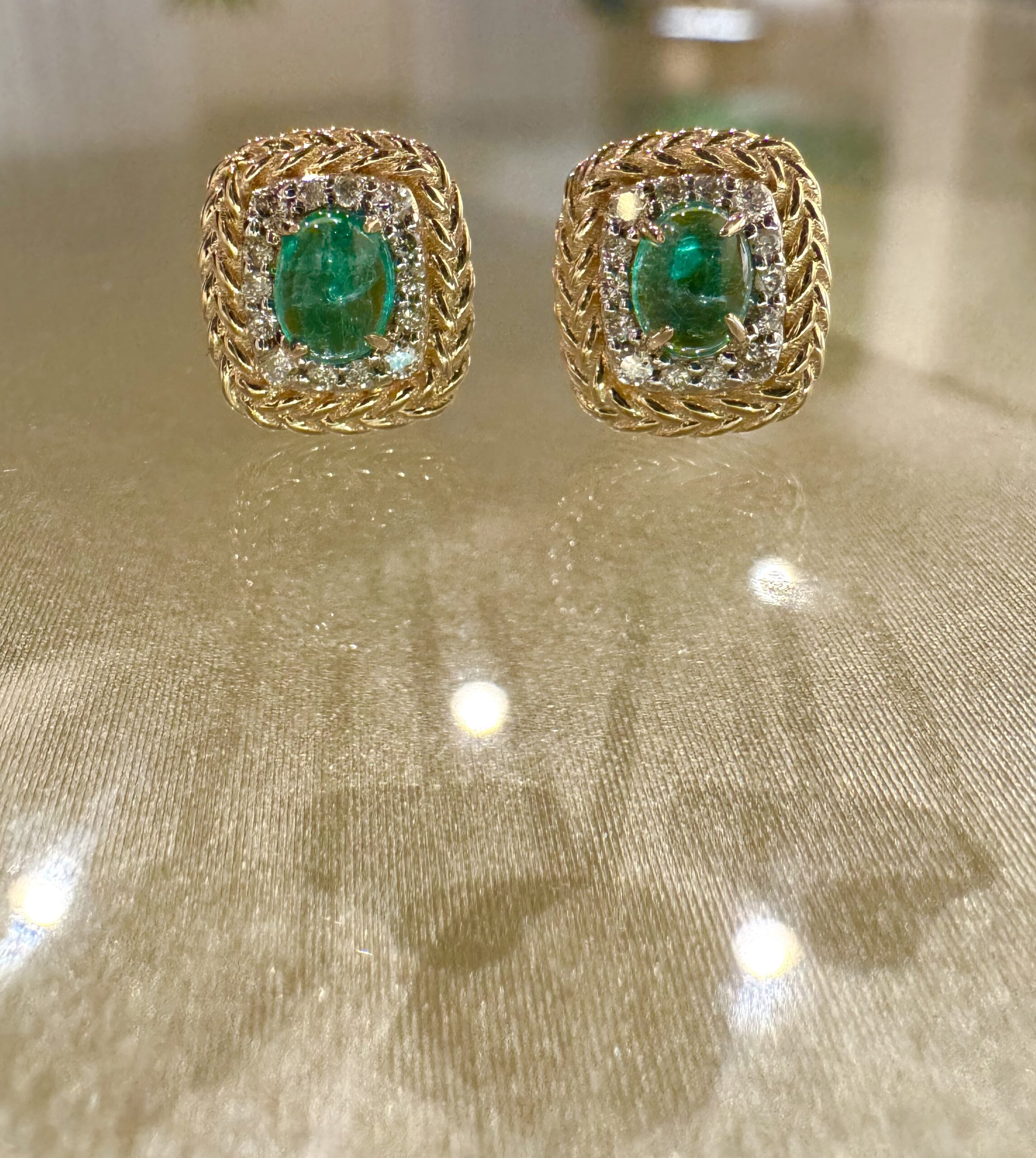 明るいグリーンのエメラルドは、お顔周りを華やか且つ知的に演出します。