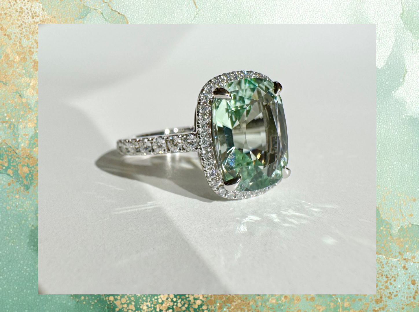 七色も見える美しい輝きと透明感は着用する度に気分が上がるアイテム。